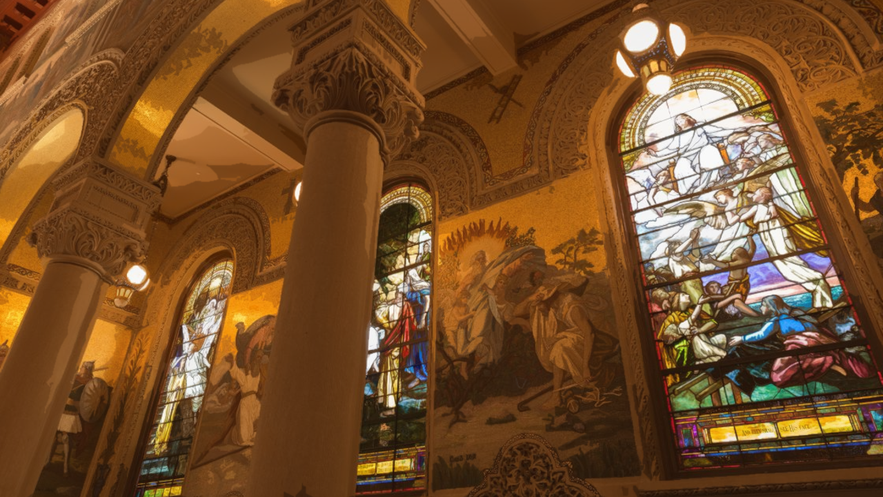 De jongen was verbaasd en keek zijn ogen uit. Boven het altaar was een bijzonder mooi raam met veel heilige figuren. En door één figuur scheen net de zon, zodat die helder stralend oplichtte.