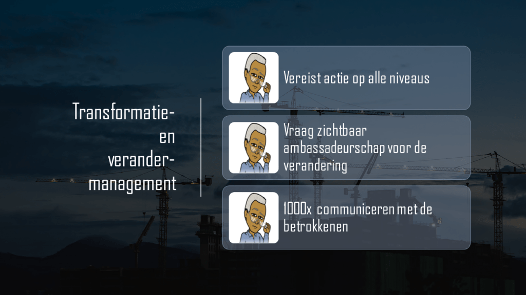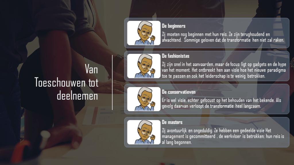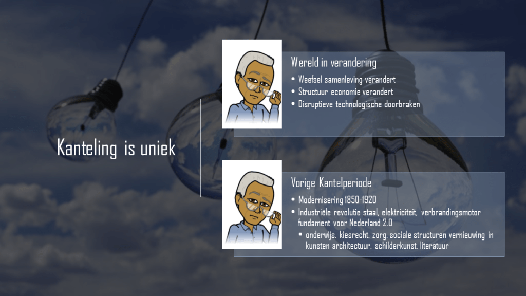 Het zijn vragen waarop ik dagelijks – samen met anderen – passende antwoorden op probeer te vinden. Zoals ik dat ook – en met veel plezier – deed en doe met collega’s uit den lande die – in het kader van hun opleiding Beleidsadviseur 3.0. dezelfde vindtocht lopen. Het levert telkens weer inspirerende gesprekken, grotere en kleinere tips en antwoorden op. Aan de hand van onderstaande Power Point bijvoorbeeld. Hierin plaats(t)en wij de transformatie in het ruimere perspectief van een verandering van tijdperk.