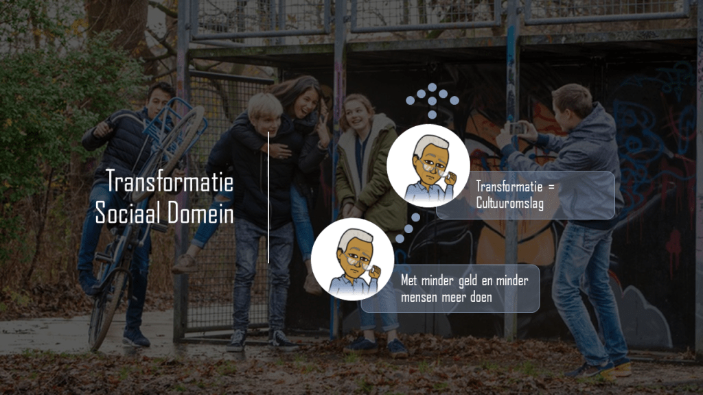 Transformeren binnen het sociaal domein. De eerlijkheid gebiedt ons te zeggen dat we nog maar aan het begin van de transformatie staan. De nodige stappen worden gezet, maar het moeilijkste moet nog komen. We zitten met zijn allen in een veranderingsproces, met verschuivingen in macht, zeggenschap en geld. En daar zit hem nou net de kneep. Want, wij kunnen – van werkvloer tot bestuurskamer en van burger tot parlement- daar (nog) niet goed mee omgaan. We onderschrijven het gedachtegoed wel, maar de ons zo bekende en vertrouwde systemen van sturing, controle en verantwoorden kunnen wij lastig tot niet loslaten. Het effect: scepsis, afwachten of vingerwijzen houdt de beweging op. Het gaat nu vooral om leiderschap. Wie pakt de handschoen op als het tegen zit? Als het niet gaat zoals gedacht, verwacht, gewenst of nodig is? Wie laat zien wat mogelijk en nodig is? Wie zorgt er voor dat de uitvoeringspraktijk en niet het bestuur in leidende positie wordt gebracht? Kortom, wie doet daarbij nu wat en hoe dan precies? En wie stuurt wat aan?