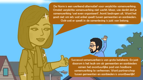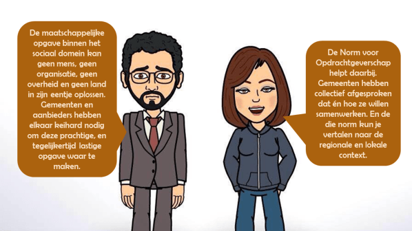 Iet Swaard en Ad Fies, beiden werkzaam binnen het sociaal domein – leggen uit wat de NvO betekent, welke afspraken worden gemaakt en hoe er invulling aan de samenwerking gegeven kan worden. En, eerlijk is eerlijk, zij erkennen ook dat strategische samenwerking lastig en tegelijkertijd onontkoombaar is.