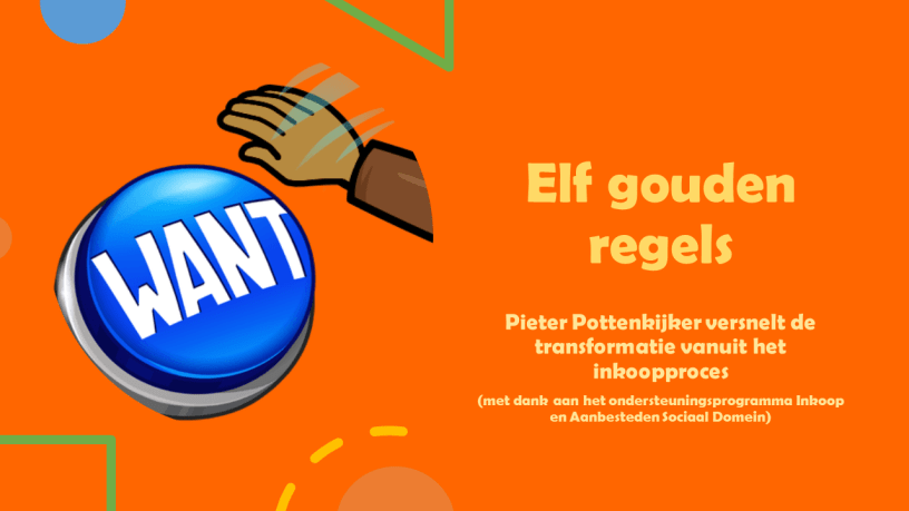 Landelijk gezien maken gemeenten verschillende afwegingen en keuzes bij de inkoop van zorg bij aanbieders. Een inventarisatie van goede gewoontes heeft geleid tot elf Gouden Regels om de Transformatie in het sociaal domein door middel van inkoop te versnellen. Pieter Pottenkijker – fan van de transformatie – licht ze toe.