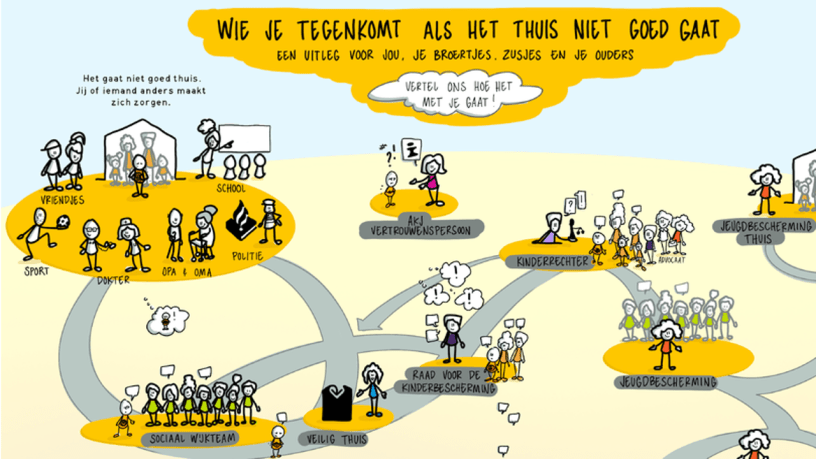 Meestal weten ouders en kinderen niet wat hen te wachten staat, wanneer zij in de Jeugdbeschermingsketen terecht komen. Informatie over het proces, kan op zo’n moment rust en vertrouwen bieden. De tekeningen en vragen op de praatplaat geven een (visuele) uitleg over de mogelijke routes die kinderen en ouders kunnen doorlopen in de Jeugdbeschermingsketen.