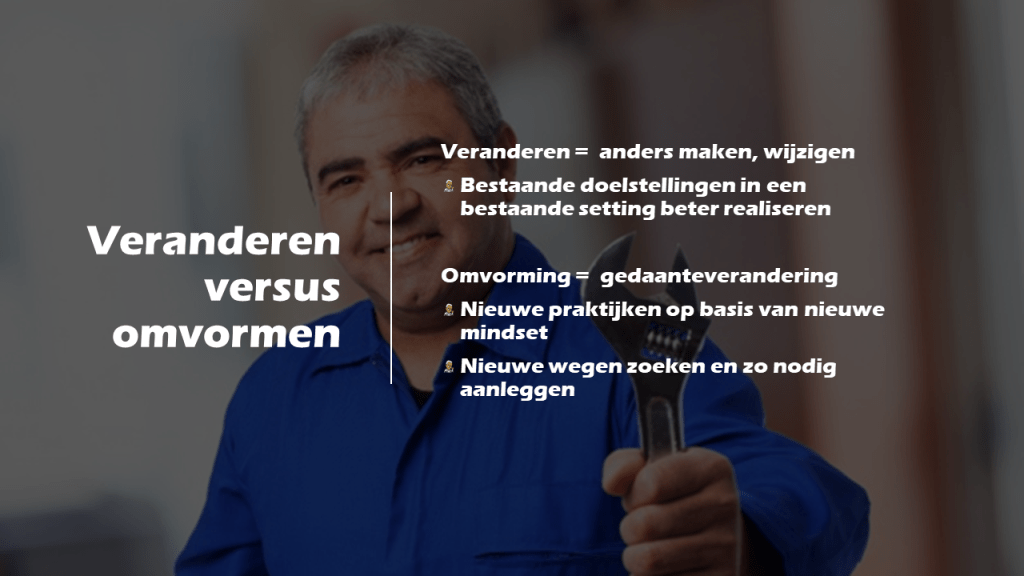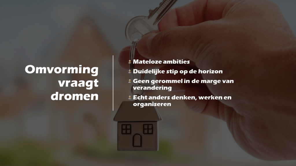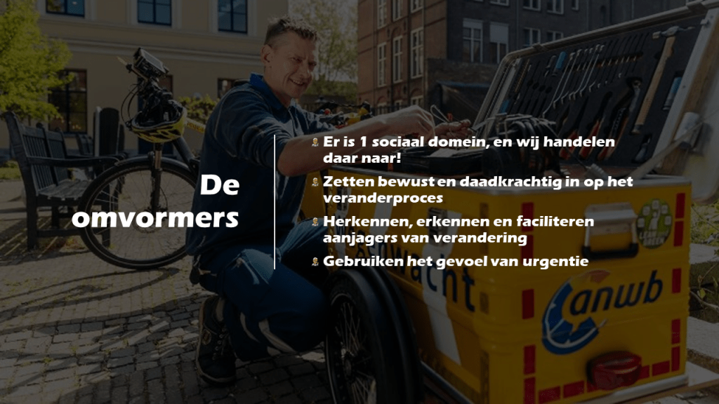 - Wij zetten bewust en daadkrachtig in op het veranderproces.