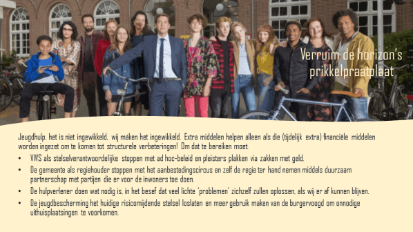 - Deze prikkelpraatplaat is geïnspireerd door – en een adhesie aan – (de woordvoeders en rode draad in) het artikel “Is geld de oplossing voor de jeugdzorg? Vijf deskundigen reageren” ( Matthijs van Dam, Zorg & Sociaalweb, 28-04-2021.