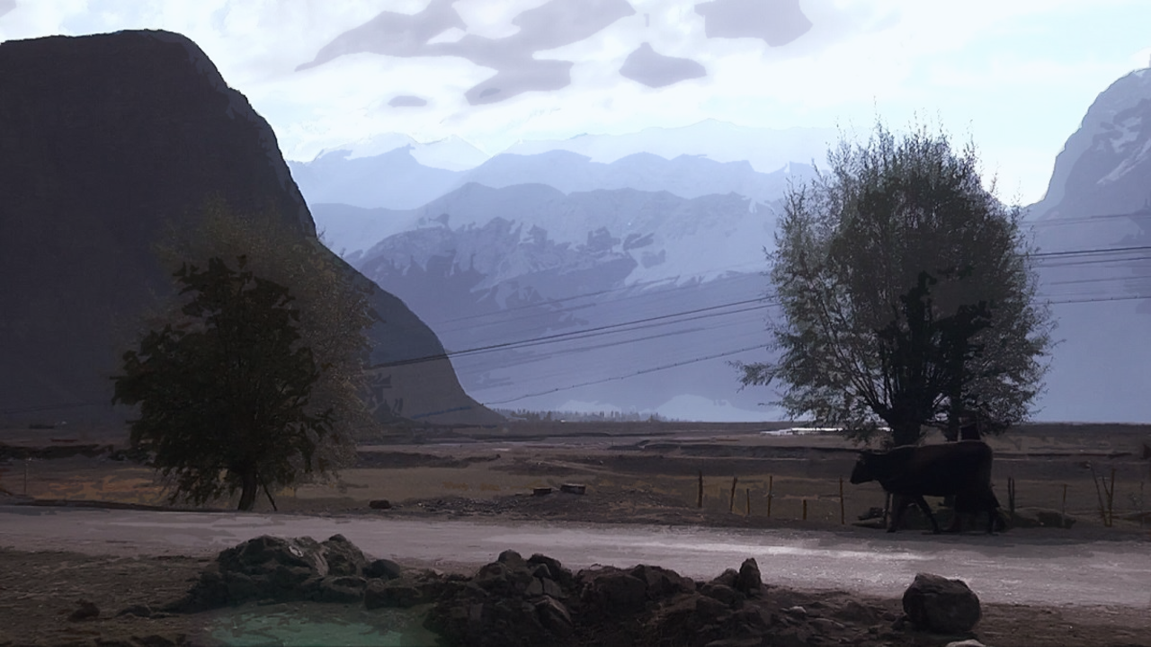 Uur na uur, terwijl de zon de hemel doorkruiste, zetten ze hun reis voort en stopten slechts één keer toen ze de voet van de berg naderden. Opnieuw vroeg Hwan aan Lao-li om hem te vertellen wat hij zag. “Grote wijze, in de verte zie ik hanen terwijl ze rond schuren rennen, koeien die slapen in ontspruitende weiden, ouderen die zich koesteren in de late middagzon en kinderen die ravotten bij een beekje.” De meester bleef zwijgend lopen tot ze de poort naar de stad bereikten. Daar gebaarde de meester naar Lao-li, en samen zaten ze onder een oude boom. “Wat heb je vandaag geleerd, Lao-li?” vroeg de meester. “Misschien is dit de laatste wijsheid die ik je zal meegeven.” Stilte was het antwoord van Lao-li.