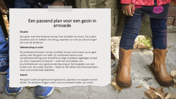 De uitdaging ligt in het verbinden van deze werelden. Vakmensen werken in co-creatie met de cliënt, waarbij ze samen naar oplossingen zoeken die passen binnen de kaders maar recht doen aan de menselijke maat.
