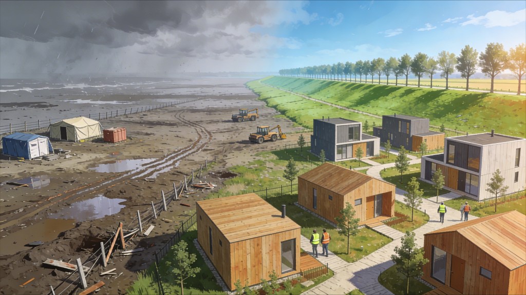 In rampgebieden denken we anders. Daar is de vraag niet: “Kunnen we wel bouwen?” maar: “Hoe zorgen we dat mensen volgende week een dak boven hun hoofd hebben?”